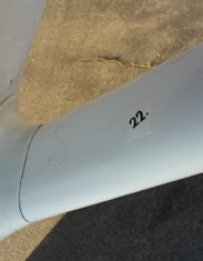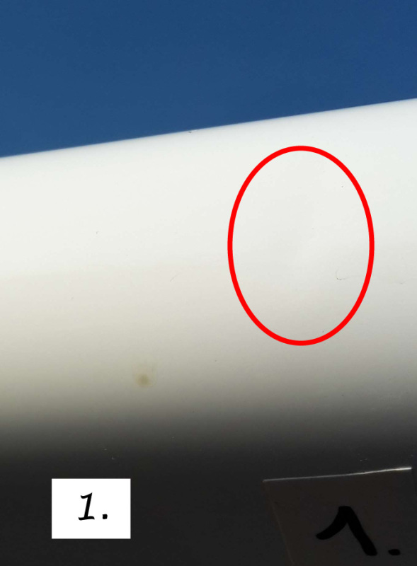 | 8 | innere Ecke linkes Höhenruder punktuell eingedrückt und Ecke einschl. Sicke verformt |